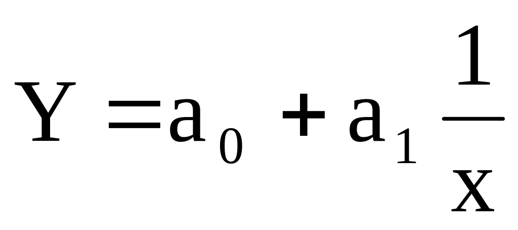 в) параболічна залежність Y = a0 + a1х2 . Замінюємо х2 = х′ і отримаємо лінійну модель Y = a0 + a1х′.