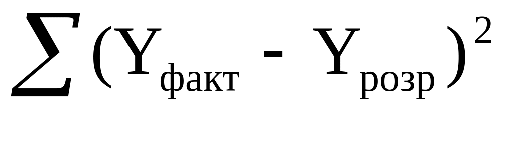 Скористаймося методом найменших квадратів, суть якого полягає у наступному: сума квадратів відхилень ординат точки, що спостерігається (Xi, Yi) від відповідної ординати точки, що лежить на регресійній прямій, повинна бути найменшою