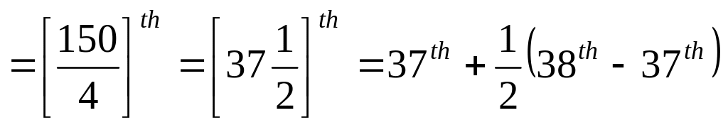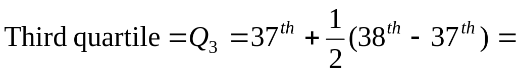 Therefore, when the observations are arranged in ascending order, the third quartile is half of the way from thirty-seventh to thirty-eighth.