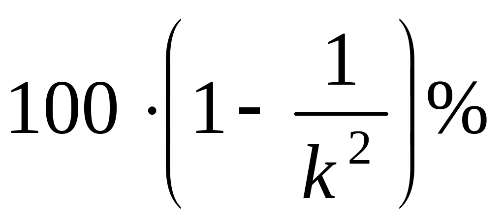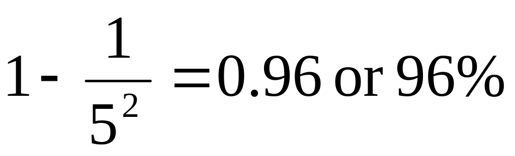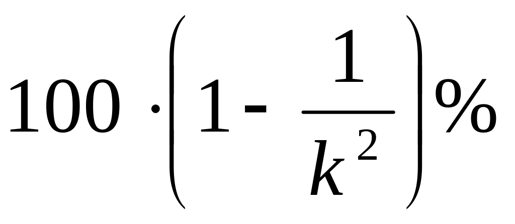 According to Chebyshev’s rule, at least 55.6% of the population data lie within 1.5 standard deviations around the mean, at least 75% of the population data lie within 2 standard deviations around the mean and so on.