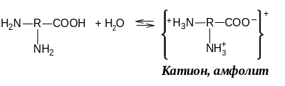 +H3N–R–COO– + OH– ((;(( H2N–R–COO– (анион, основание) + Н2О.