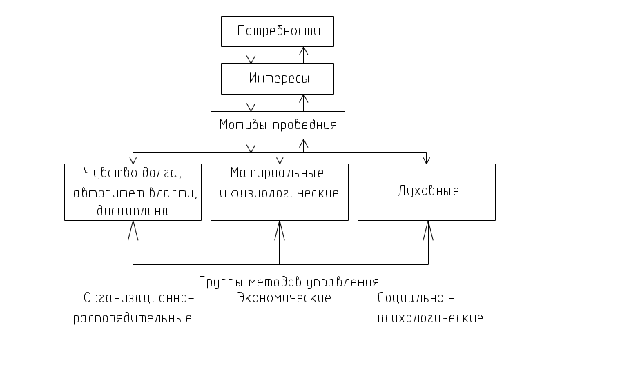 организационно-распорядительные, экономические, и социально-психологические. Они оказывают прямое и косвенное влияние на поведение человека.