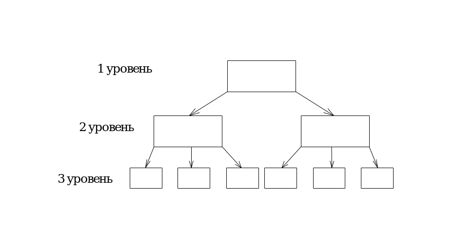 В вершине находится общая цель. Развертывание дерева целей заключается в том, что цели каждого уровня являются необходимым условием для достижения вышестоящих целей.