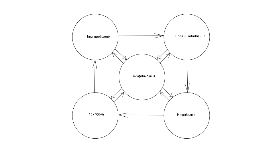 Процесс управления представляется как совокупность циклических действий , связанных с выявлением проблемы , поисками организации выполнения принятых решений