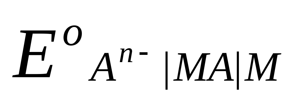 Электроды второго рода представляют собой полуэлементы, состоящие из металла, покрытого слоем его труднорастворимого соединения (соли, оксида, гидроксида) и погруженного в раствор, содержащий тот же анион, что и труднорастворимое соединение электродного металла. Схематически электрод второго рода можно представить как An– MA M , а протекающую в нем реакцию