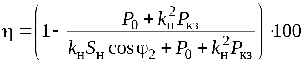 При известном коэффициенте мощности нагрузки можно предположить, что мощность потерь в меди пропорциональна квадрату коэффициента нагрузки и мощности короткого замыкания. Таким образом, величина коэффициента полезного действия определяется формулой