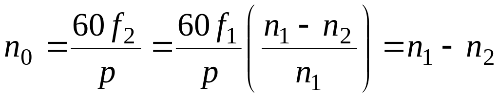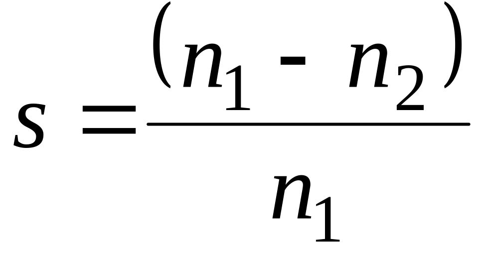 При работе двигателя ротор вращается в направлении, совпадающем с направлением вращения магнитного поля. Тогда скорость вращения ротора относительно магнитного поля будет определяться формулой