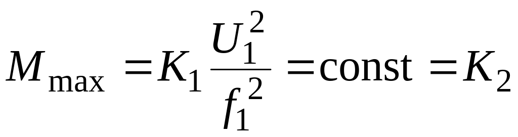 Взаимозависимость напряжения и частоты сети определяются реальными условиями работы двигателя. При постоянном моменте нагрузки желательно сохранить неизменным значение максимального момента, развиваемого двигателем, т. е. не зависящим от частоты питающей сети. Но как следует из ранее приведенной формулы