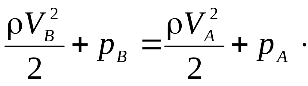Линию тока можно рассматривать как трубку тока с пренебрежимо малым сечением. Строго говоря, уравнение Бернулли будет справедливо для любой линии тока. Для линии АВ запишем его в виде