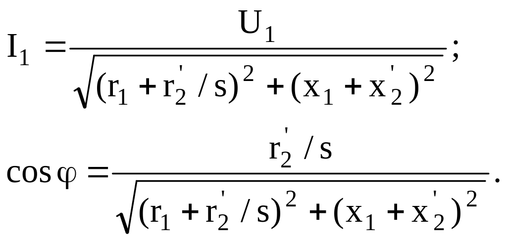 Відповідно зміні частоти f2, а отже, і ковзанню s змінюються ЕРС, індуктивний опір і сила струму ротора: