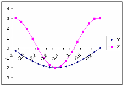 от –3 до 0 с шагом 0,2. В ячейки В1 и С1