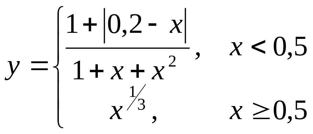 =ЕСЛИ(А1<0.5; (1+ABS(0.2-A1))/(1+A1+A1^2); A1^(1/3))