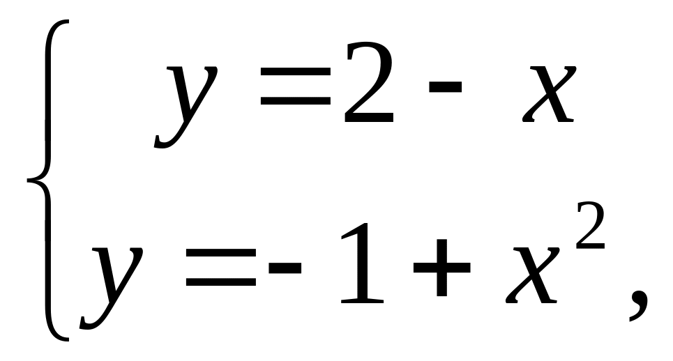 Как видно на графике, такая система имеет две точки пересечения. Для решения системы надо построить таблицу, где в клетках В2 и В3 ввести обе функции, которые в качестве аргумента Х ссылаются на ячейку А2. Кроме того, для контроля вычислений в С2 вводится целевая функция, которая вычисляет среднее отклонение значений функций друг от друга. Очевидно, если эти функции пересекаются (т.е. имеются решения), С2=0. Для розыска корня в окно Поиск решения вводятся необходимые параметры процесса. Результат вычислений существенно зависит от начального значения, заданного в качестве решения. Ниже приведен исходный и конечный вид таблицы, если задать его равным +10.