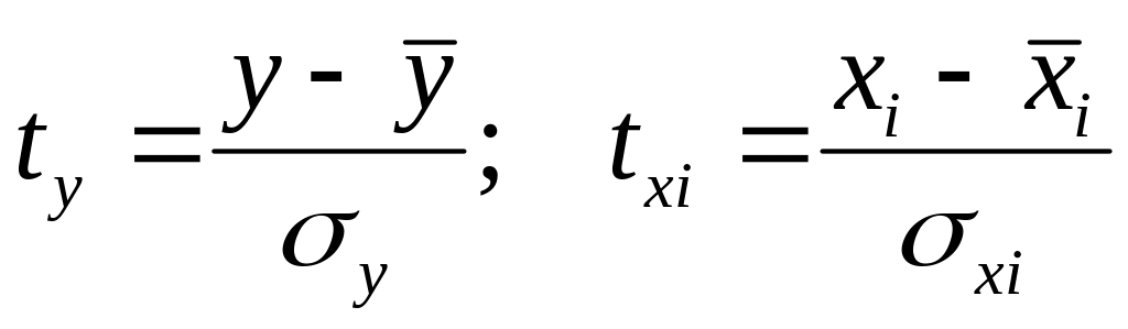 Для этого все переменные выражаются в безразмерных, так называемых стандартизированных, единицах измерения при помощи соотношений: