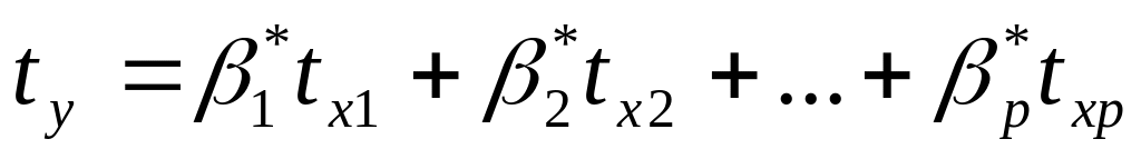 Как определяется стандартизированное уравнение линейной множественной регрессии?