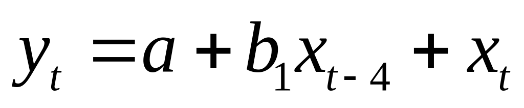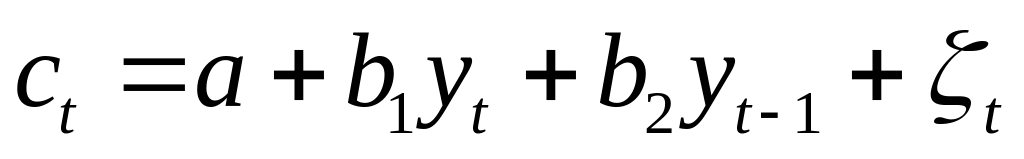 В данной модели лаговой является переменная уt-1, т.е. доход за предыдущий период времени. Возможна ситуация, когда объясняющая переменная влияет на результат не сразу же, а с определенным запаздыванием во времени, превышающим один временной интервал. Так, выпуск специалистов высшей квалификации зависит от приема в вузы четырех – пятилетней давности.