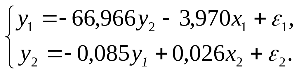 Для этой цели из первого уравнения приведенной формы модели надо исключить х2, выразив его из второго уравнения приведенной формы и подставив в первое: