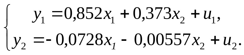 у2 = – 0,0728х1 – 0,00557х2 + и2.