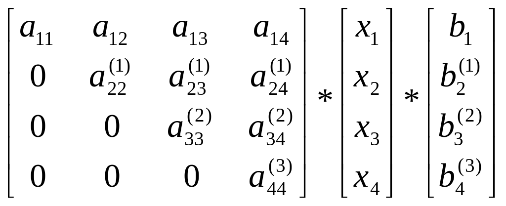 а вектор у - есть столбец правой части в системе (4.3), который мы нашли, выполняя прямой ход Гаусса.