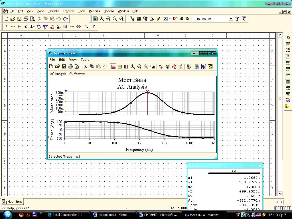 Создать модель моста Вина и релаксационного генератора и получить их графические характеристики.