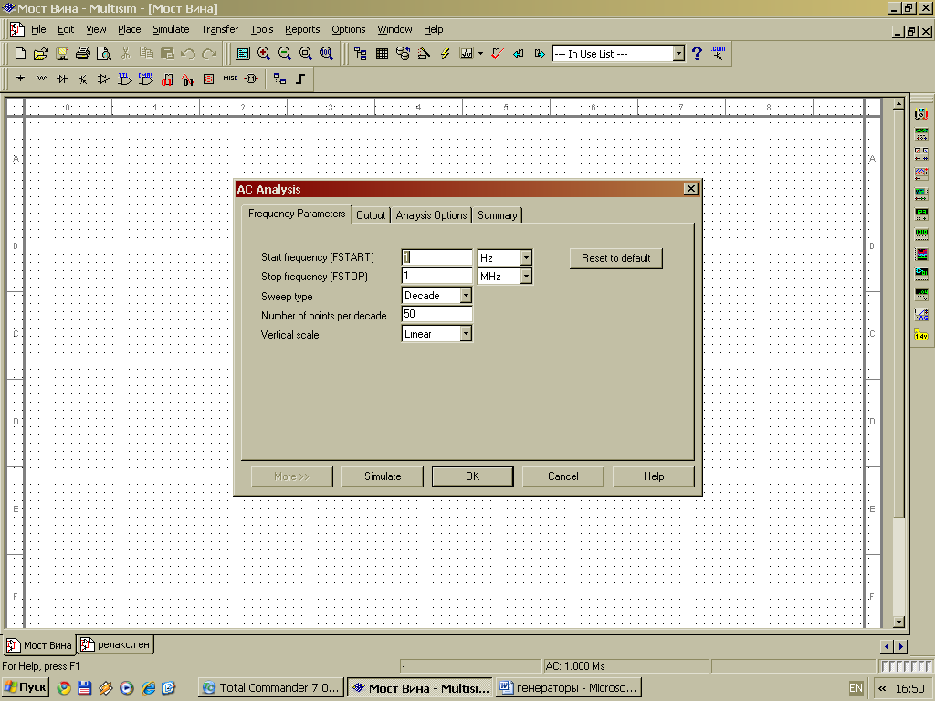 - •«Исследование схем генераторов в виртуальной лаборатории»