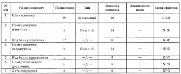 Оскільки записи масиву є сукупністю реквізитів, то набір реквізитів (W, а, р, b, о, h, d) також можна розглядати як запис інформаційного масиву "оплачених доручень" з іменем, наприклад, MAPLD. Довжина запису такого масиву дорівнюватиме сумі довжин реквізитів, які входять до нього, і становитиме 67 символів. Умовно структуру такого масиву можна подати у вигляді:
