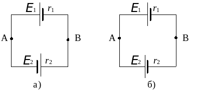 Значения ЭДС и внутренние сопротивления источников известны. Найти разность потенциалов между точками А и В (рис. 19).