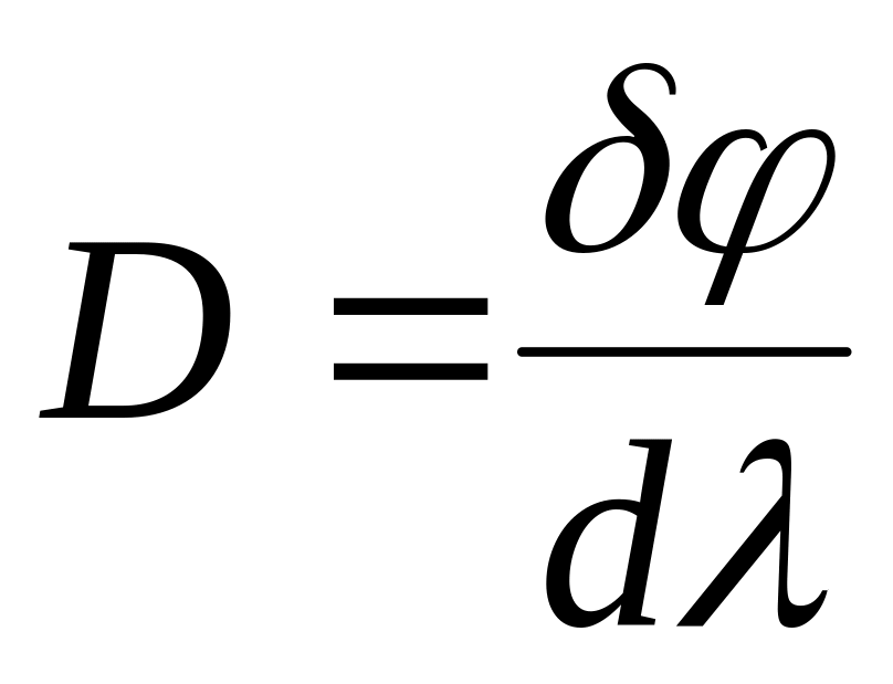 Дисперсия определяется угловым расстоянием между двумя спектральными линиями, отнесенными к разности их длин волн,