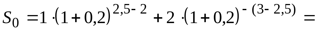 № 36. Платежи в 1 и 2 млн. руб. со сроками уплаты два и три года объединяются в один со сроком 2,5 года. Найти сумму консолиди-рованного платежа при использовании сложной процентной ставки в 20%.