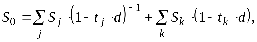 При консолидации векселей чаще всего применяется учетная ставка. В этом случае при n0 > nj: