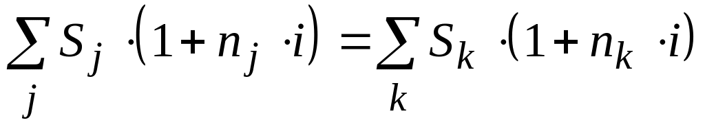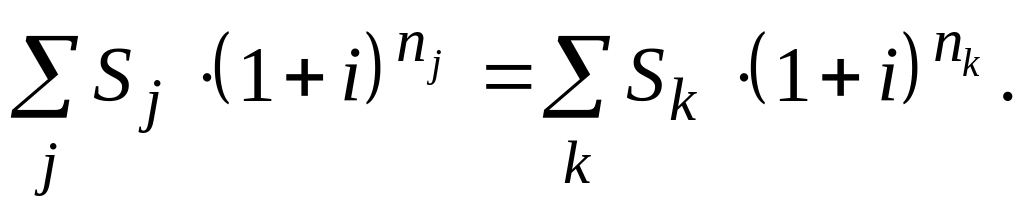 Если приведение платежей осуществляется на некоторую начальную дату, то уравнение эквивалентности в общем виде имеет вид: