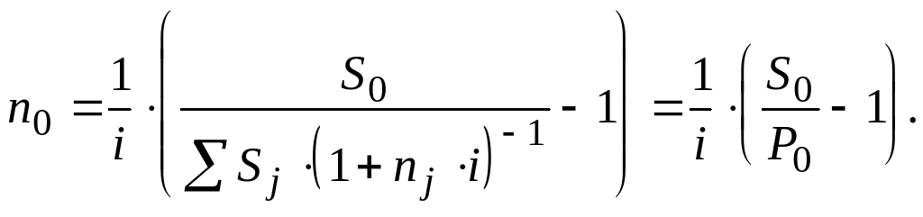 Если при объединении платежей задана величина консолиди-рованного платежа S0 , то возникает проблема определения срока его платежа n0 . В этом случае уравнение эквивалентности удобно представить в виде равенства современных стоимостей соответствующих платежей.