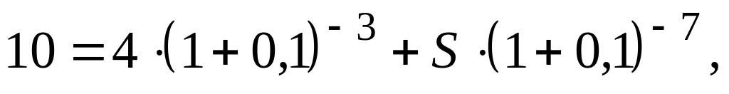 № 42. Строительная фирма получила в банке долгосрочный кредит в размере 10 млн. руб. под 10% годовых сроком на 5 лет. Впоследствии стороны пересмотрели условия займа и выработали новые: через 3 года выплачивается 4 млн. руб., а остальная сумма выплачивается через 4 года после первой выплаты. Определить сумму окончательного платежа.