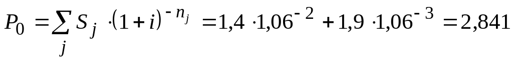 Отметим, что изменение базовой даты при применении сложных процентов не влияет на результаты расчетов по замене платежей, так как, если , то