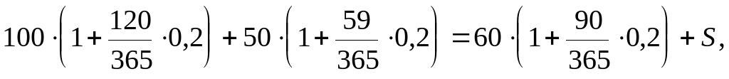 Следует отметить, что при применении простых процентных ставок изменение базовых дат приводит к некоторым, впрочем незначительным изменениям результатов. Например, если привести платежи к 1 марта, то получим уравнение эквивалентности: