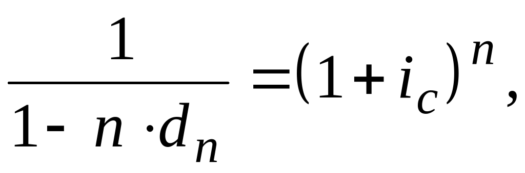 А эквивалентность простой учетной ставки и ставки сложных процентов следует из равенства: