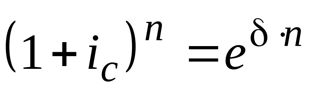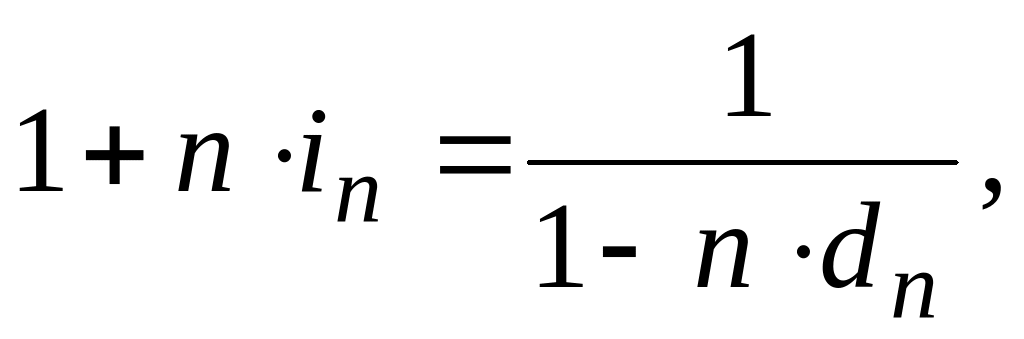 Формулы эквивалентности процентных ставок получим исходя из равенства соответствующих множителей наращения или дисконтных множителей.