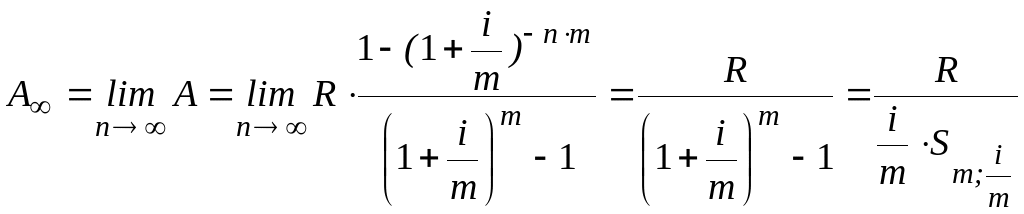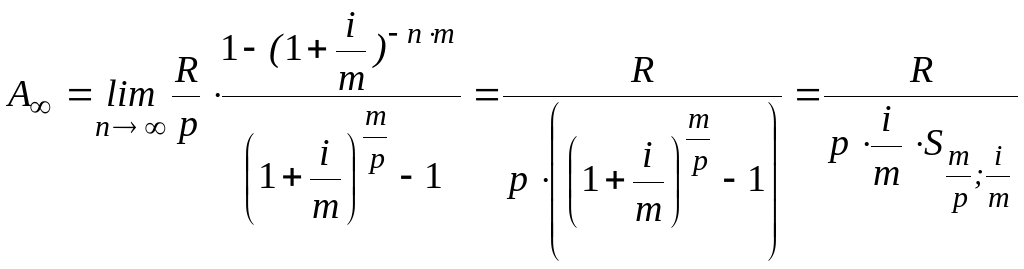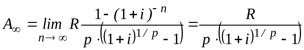 А современная стоимость -срочной бесконечной ренты с начис-лением процентов один раз в год равна:
