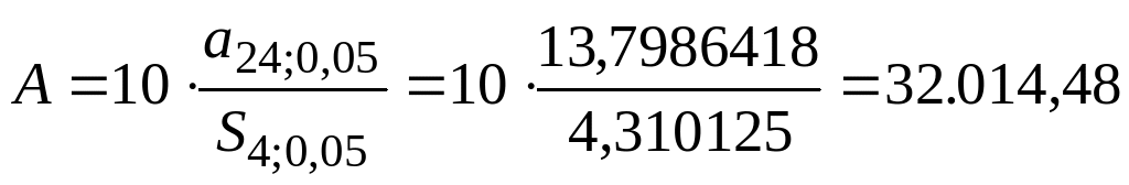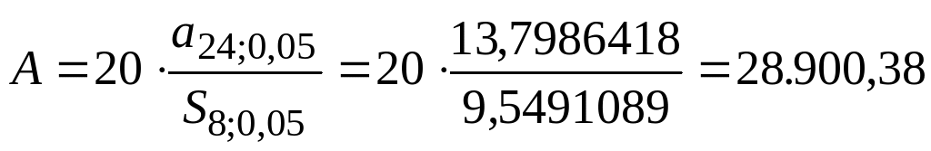 Платежи производятся каждые лет по руб., а проценты начисляются раз в год. Тогда из формулы (9) получаем