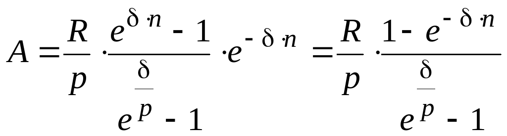 Платежи в сумме производятся один раз в год, а проценты начисляются раз в год по ставке %. Тогда из (6) получаем: