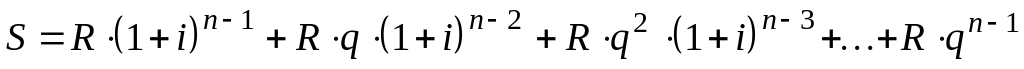 В этом случае члены ренты изменяются таким образом, что каждый последующий платеж больше предыдущего в раз. Тогда получаем за ( лет) следующую последовательность платежей: