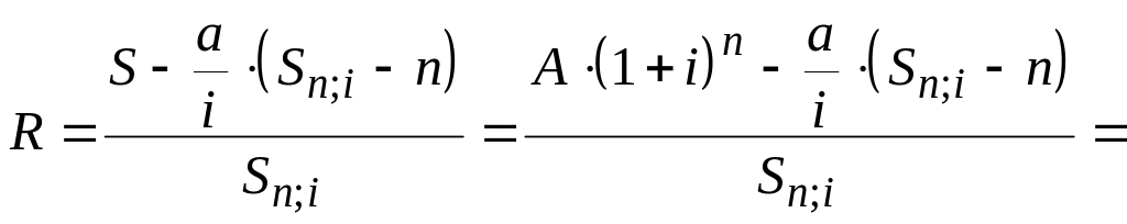 Для определения размера первого платежа при заданном значении прироста , процентной ставки и наращенной суммы используем формулу (4):