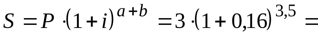 Если срок ссуды измеряется дробным числом лет, то наращенная сумма может вычисляться или по общей формуле вида (4) или смешанным образом:
