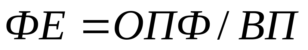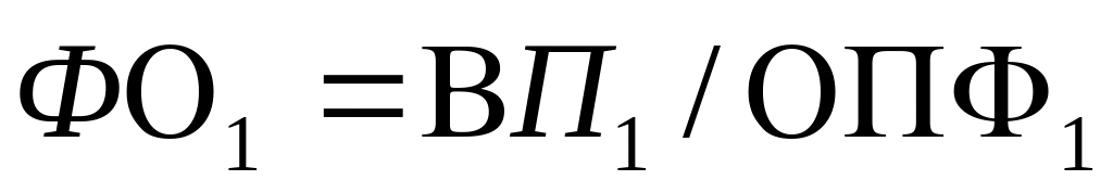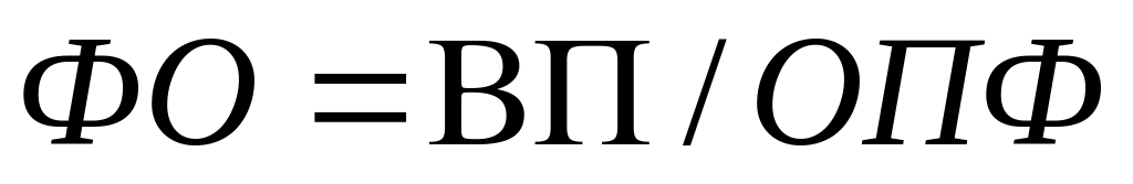 Для характеристики интенсивности использования основных средств производства используют показатели фондоотдачи, которые можно рассчитать путем отношения стоимости произведенной продукции (ВП) или выручки от ее реализации (В) к среднегодовой сумме основных производственных фондов (ОПФ):