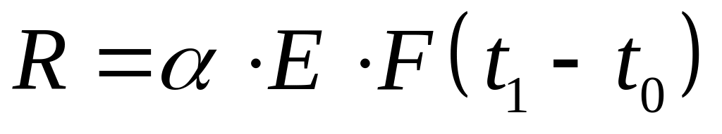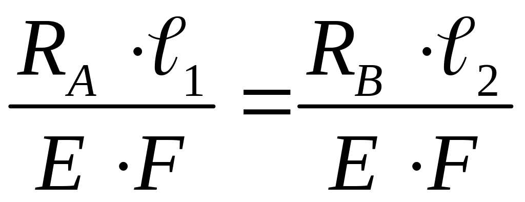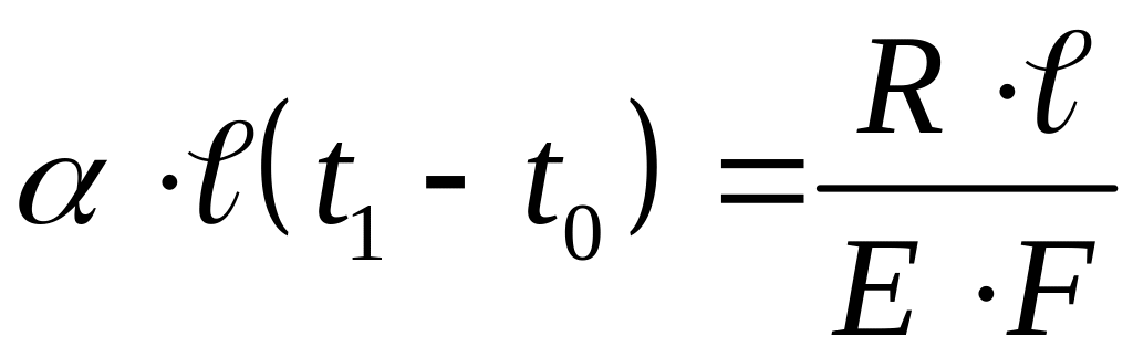 При нагріванні стрижня він подовжуватиметься і чинитиме тиск на опорні поверхні 1 і 2. Це приведе до виникнення зусиль R1 і R2, що стискають стрижень. За умови рівноваги цих сил виходить: