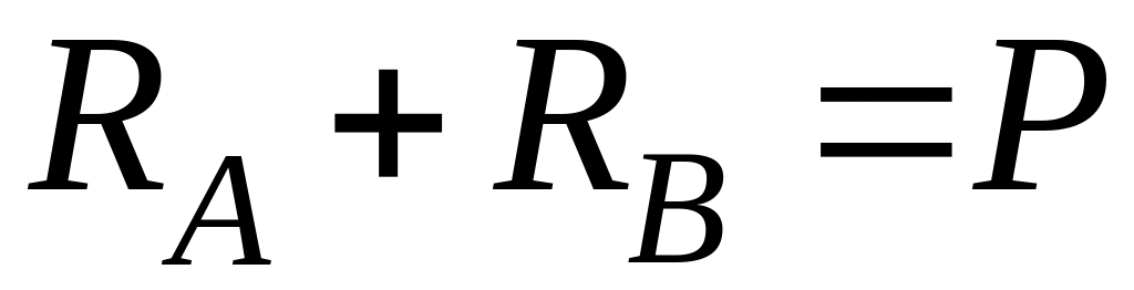Розв’язання. Вертикальна сила Р розтягує верхню частину бруса і стискає нижню, у зв'язку з чим реакції RА і RВ у зачепленнях визначені бути не можуть з рівнянь статики, оскільки при наявних двох невідомих може бути складене тільки одне рівняння або рівновага (1.16):
