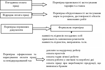 Контроль обґрунтованості бухгалтерських записів по операціях з нарахування оплати праці;