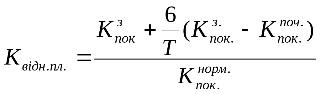 Для аналізу можливості втрати або відновлення платоспроможності використовують коефіцієнт відновлення платоспроможності: