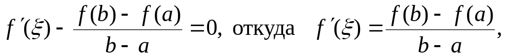 дифференцируема в каждой точке интервала (a,b), то внутри сегмента [a,b] существует, по крайней мере, одна такая точка ξ, что справедлива формула