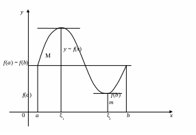 Доказательство. Так как функция f(х) непрерывна на отрезке [a,b], то, по 2-ой теореме Вейерштрасса (гл.1, §12, п.12.9), она имеет на этом отрезке наибольшее значение М и наименьшее значение m (рис.18).